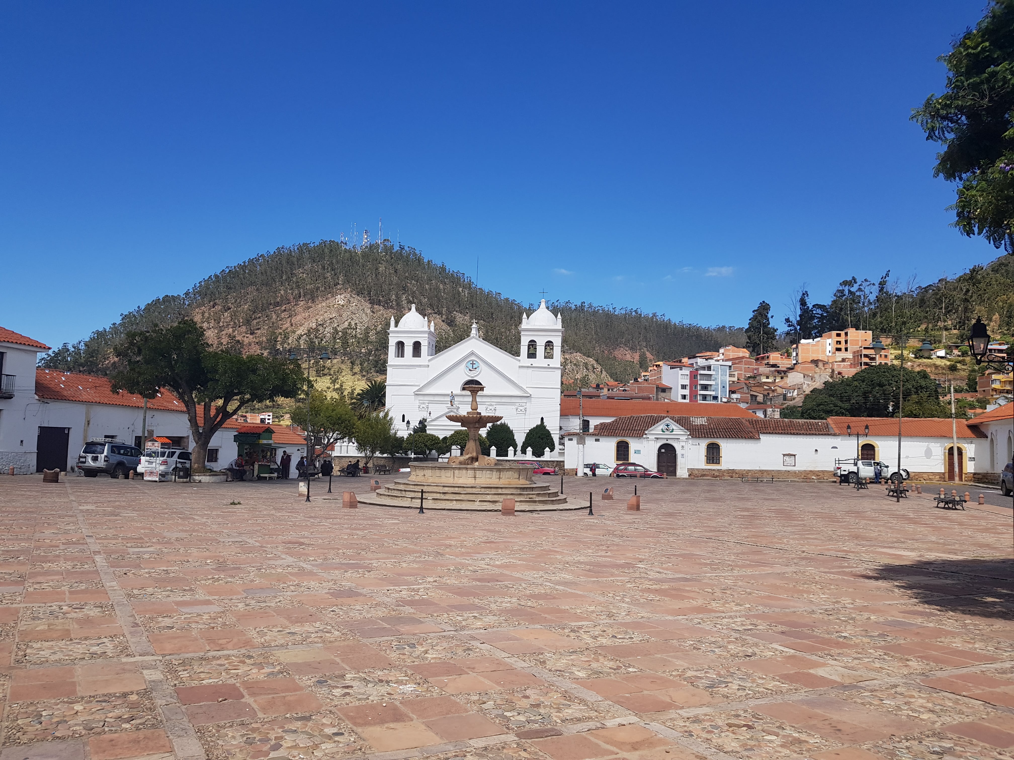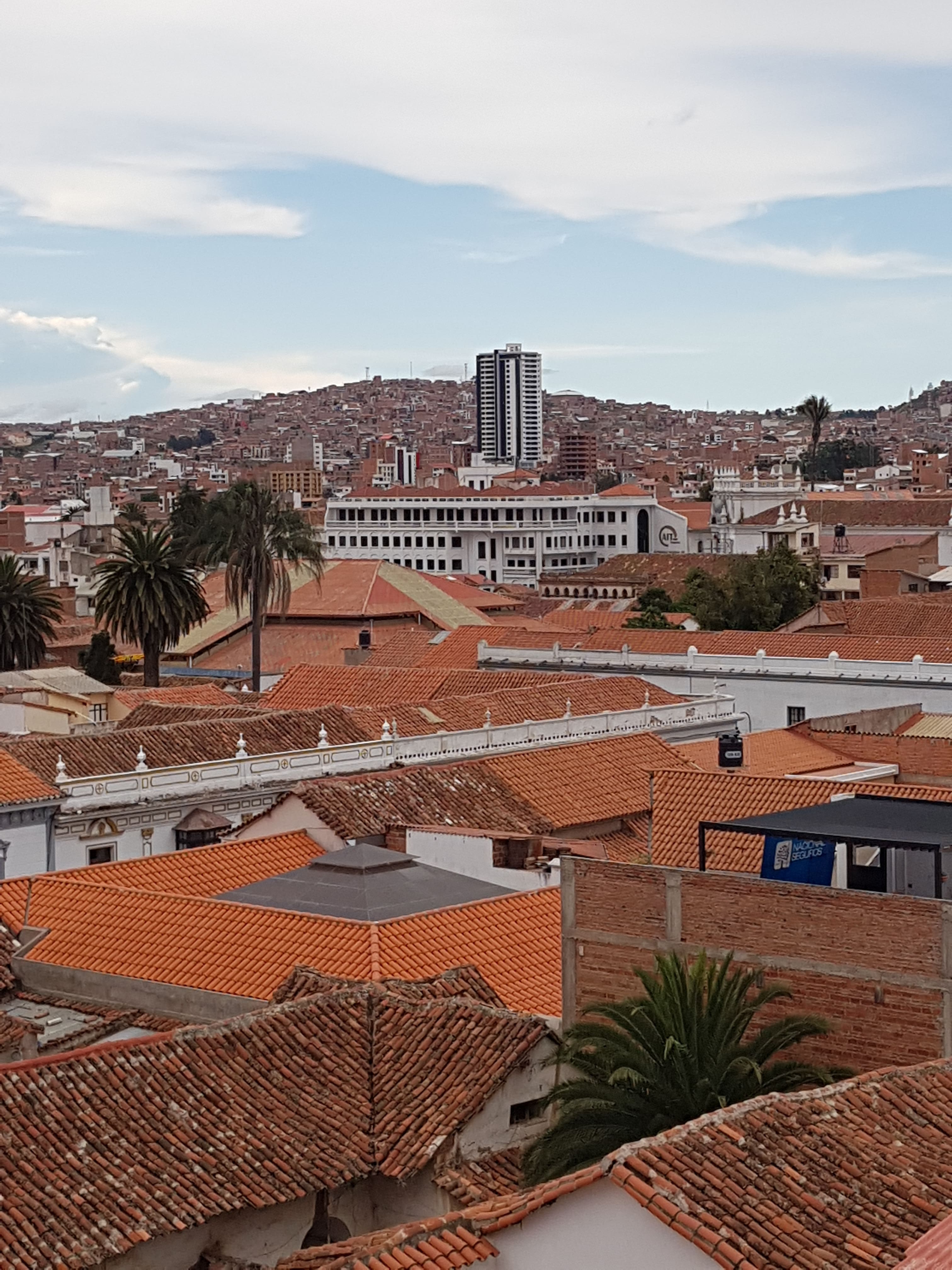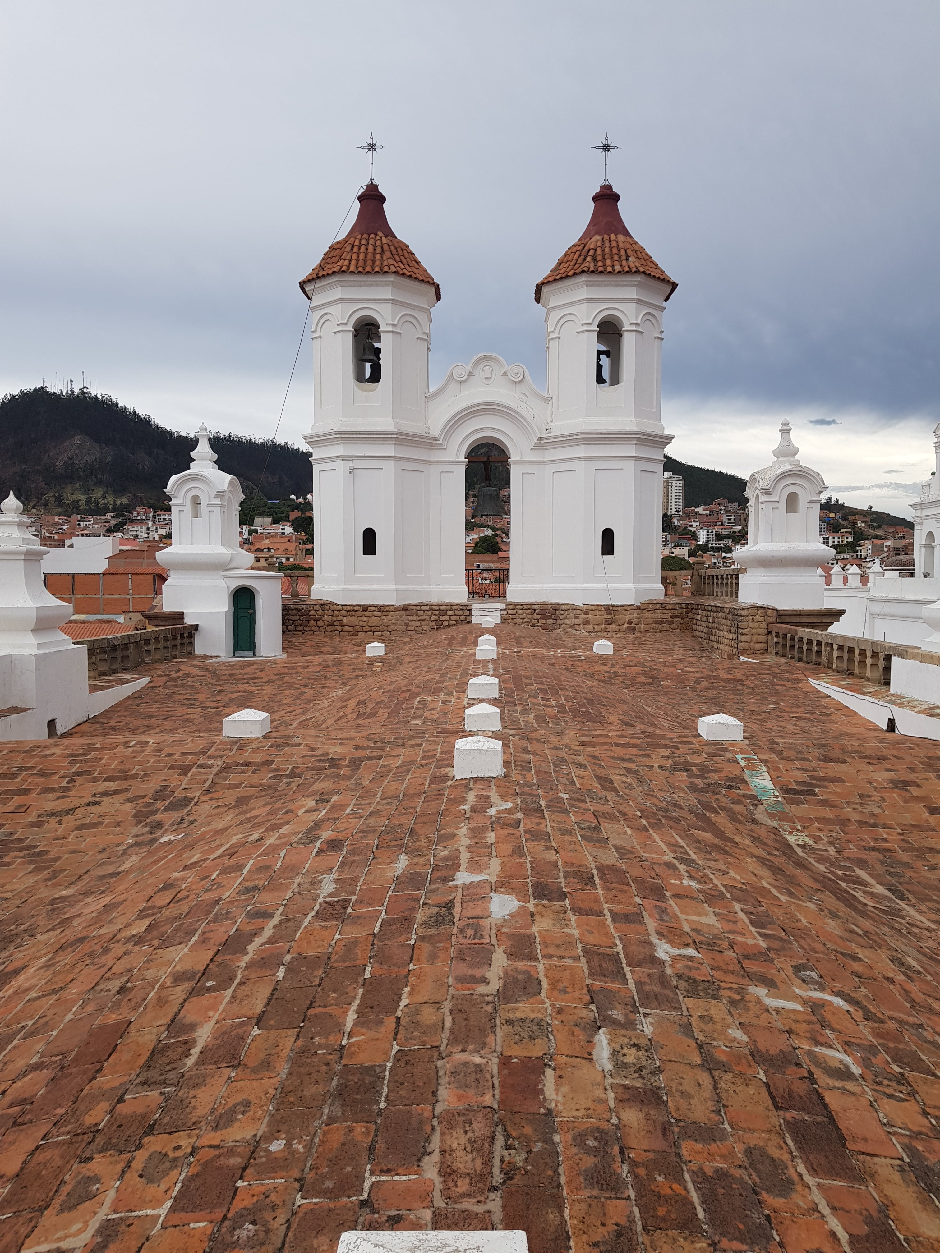 Sucre se situe à environ 2 800m d'altitude, dans l'altiplano, alors gare au sorrojche (le mal des montagnes, bien sûr vous vous doutez que nous avons été épargnez avec Santiago ) ! Elle est entourée par deux montagnes qui veillent sur elle, nommée Sica Sica et Churuquella.